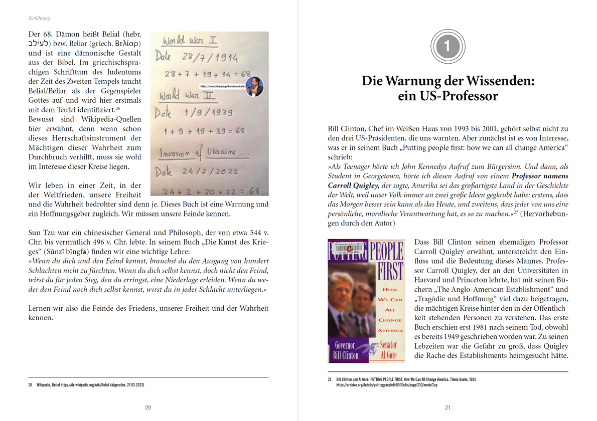 Dieses Buch kann nur die Vergangenheit treffend beschreiben. Warnungen und Ratschläge für eine bessere Welt beinhaltet dieses vorliegende Werk ebenfalls. Aber eine exakte Weissagung der Zukunft obliegt anderen. Freimaurer und bestimmte jüdische Kreise lieben die Symbolik, die Kabbalistik. Die hier veröffentlichte gleichartige Ableitung der 68 aus dem Datum des Beginns des Ersten Weltkrieges, des Zweiten Weltkrieges und des Krieges in der Ukraine mag für viele verstörend sein.